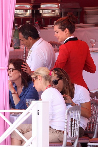 Charlotte Casiraghi, her mother Princess Caroline of Hanover and Alex Dellal are spotted during the '30th International Cannes Jumping' Global Champion Tour 2011 on June 11, 2011 in Cannes, France.