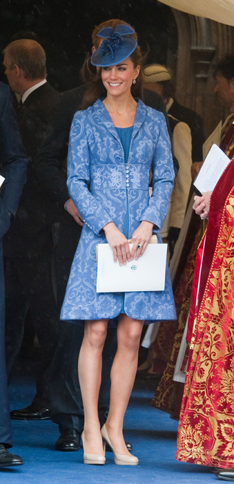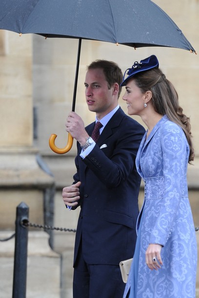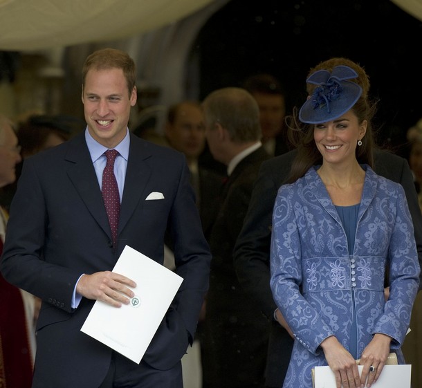 The Duke and Duchess of Cambridge leave with other members of the royal family after a church service to mark Prince Philip's 90th birthday in Windsor, west of London, on June 12, 2011.