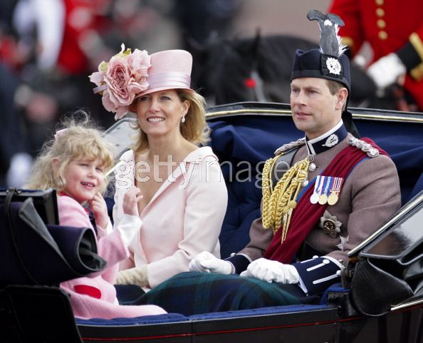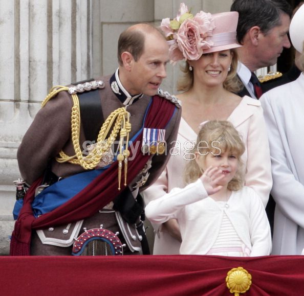 Prince Edward, Earl of Wessex, Sophie Countess of Wessex and Lady Louise Windsor stand on the balcony of Buckingham Palace after the Trooping the Colour Parade on June 11, 2011 in London, England.