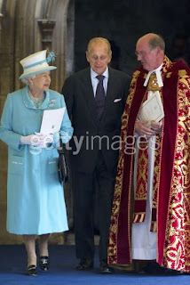 Queen Elizabeth II and Prince Philip, the Duke of Edinburgh arrive with other members of the royal family for a church service to mark Prince Philip's 90th birthday on June 12, 2011 in Windsor, England.