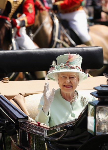 Queen Elizabeth ll and Prince Philip, Duke of Edinburgh arrive in an open carriage at Royal Ascot on June 14, 2011 in Ascot, England.